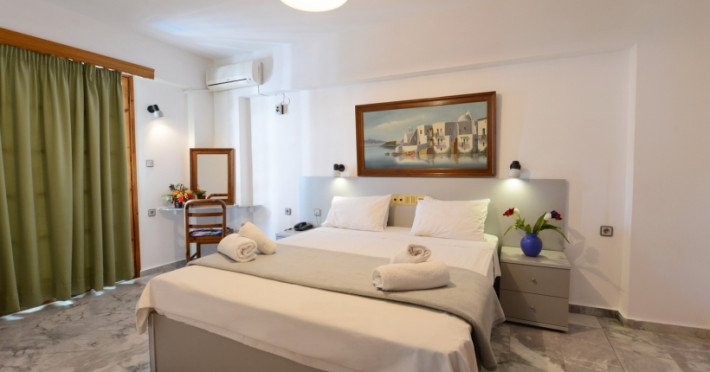 Sunt disponibile 18 camere. Unele camere au balcon cu vedere la mare sau la piscină. Camerele confortabile de la Artemis Hotel au pardoseală de gresie/ marmură, aer condiționat, Tv cu canale prin satelit și seif. Fiecare cameră dispune de cană-fierbător. În camere există baie cu cadă sau duș prevăzută cu foehn. Oaspeții au acces gratuit la serviciul Wi-fi în camere. Curățenia in cameră se face zilnic. Toate camerele spațioase de la Artemis Hotel au zonă de relaxare cu canapea, ceea ce oferă un plus de confort. Fiecare unitate de cazare include o chicinetă utilată cu frigider, plită de gătit și ustensile de bucătărie. De asemenea, sunt disponibile o zonă de luat masa și un cuptor pentru prepararea mâncărurilor. Proprietatea oferă camere pentru familie cu o suprafață mai mare și un număr mai mare de paturi față de cele standard. Se pot rezerva de asemenea camere pentru nefumători.