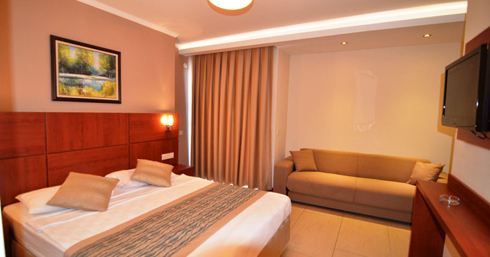 Hotelul este impartit in 2 cladiri, camerele fiind dotate cu: aer conditionat, minibar, grup sanitar, cabina de dus, TV prin satelit, telefon, uscator de par, balcon.