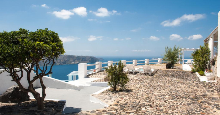 Cel mai apropiat aeroport este Aeroportul Internaţional din Santorini, situat la o distanță de 5,3 km. La cerere proprietatea organizează transfer la/de la aeroport contra cost.