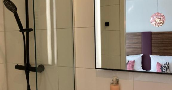 ARTHOTEL Haar are camere decorate viu, cu birou, frigider și baie modernă.