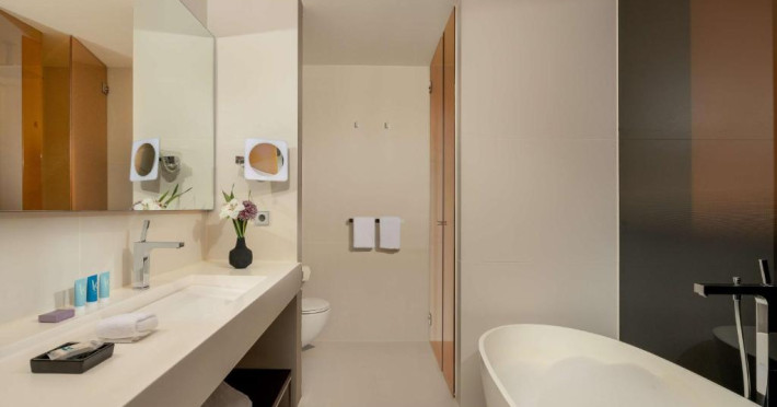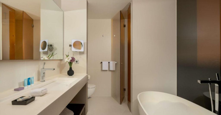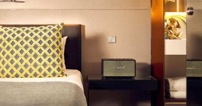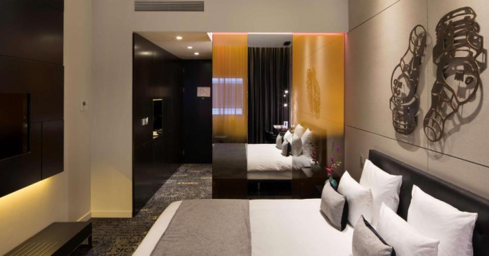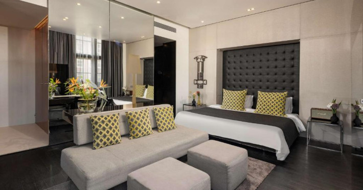Each room comes with mood lighting and flat-screen TV. The bathroom boasts a rain shower, separate toilet, and Elemis guest amenities. Hairdryer, luxurious bathrobes and slippers are provided. There is a mini fridge and an illy espresso machine in each room.