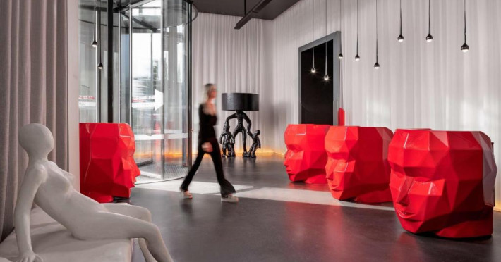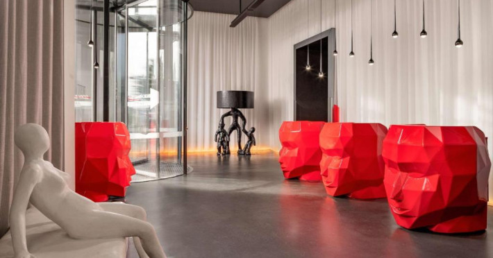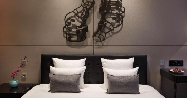 The hotel's modern rooms all feature artwork by Atelier Van Lieshout and free Wi-Fi is available throughout the hotel.