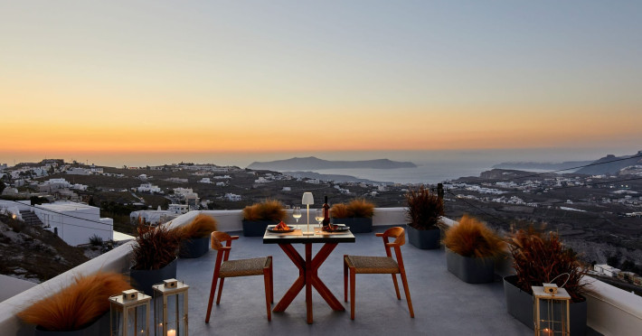 Overlooking the iconic caldera from the side of Pyrgos Village hilltop, Arxegono Cave Houses features four charming cave residencies of an 1870 family-owned winery, thoroughly renovated in 2023 with an authentic feel, in harmony with its natural environment. Carved through the rock within the boundaries of the old castle, and only a short walk away from the village center, Arxegono Cave Houses invites you to experience a dreamlike vacation in a tranquil setting of elegance, tradition, and warm Greek hospitality, always welcome in our home! Built with the perfect harmony of the traditional Santorinian architecture, the cave residencies encircle an inviting courtyard, while the main winery facility at the very heart of the building, is now used as the gracious hall that can host romantic private dinners, special occasion celebrations or can make the perfect setting to simply relax, enjoying an aromatic glass of wine. The serene, spacious terrace at the highest point of the building, is the highlight of the facility, privileged with mesmerizing views over Santorini and the iconic caldera, especially during the evenings in sunset magic. Subtle elegance, stunning caldera views and warm Greek hospitality blend into a unique ambience for guests to indulge in, and experience a relaxing, memorable stay. ARXEGONO STORY Arxegono in Greek means âthe one born in ancient timesâ. Built in 1870 on the northern side of Pyrgos hilltop, Arxegono Cave Houses is a traditional family-owned winery, now featuring an elegant complex of four cave residencies.Datorita dinamicitatii domeniului disponibilitatea ofertelor se modifica de la un moment la altul. De aceea ofertele sunt valabile in limita locurilor disponibile. Agentia nu este responsabila pentru eventualele neconcordante care pot aparea intre informatiile privind tarifele si alte detalii din site si informatiile primite in agentie. In aceste cazuri vor avea prioritate, intotdeauna, informatiile primite in agentie.