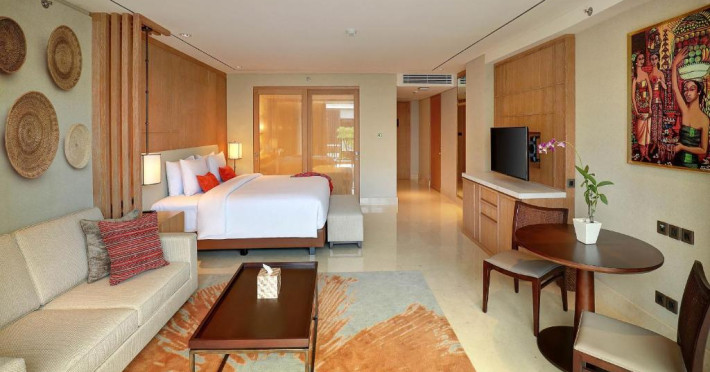 Fiecare cameră spațioasă este dotată cu o canapea, un televizor cu ecran plat și un frigider. Anumite camere de la Aryaduta Bali au balcon, dar toate camerele cu aer condiționat sunt dotate cu o baie privată.