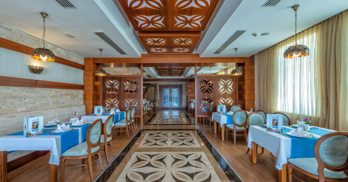 Hotelul pune la dispozitia turistilor restaurant principal, 4 restaurante a la carte, 7 baruri, piscina cu tobogane, piscina interioara, tenis, volei, lift, magazine, fitness, sauna, masaj, baie turceasca, sala de jocuri, biliard, animatie,centru SPA.