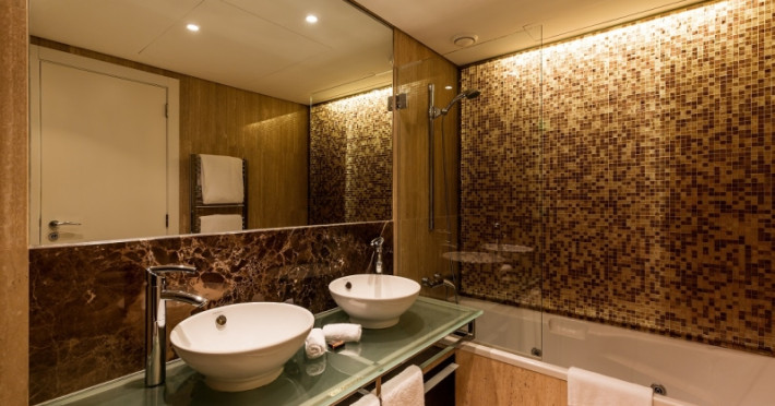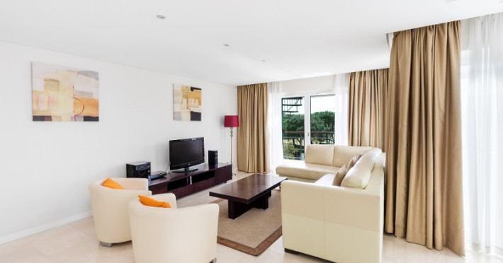 The apartments of the As Cascatas Golf Resort & Spa Vilamoura offer spacious and beautifully decorated areas where clients will feel like at home but with the state-of-the-art facilities and commodious amenities proper of a 5-star resort. Apartments are 1, 2, 3 or 4 bedroom luxury suites with a modern design of modest lines, diaphanous spaces and common areas with natural light. Apartments are provided with kitchen, living room, King beds and truly luxurious bathrooms with Jacuzzi.