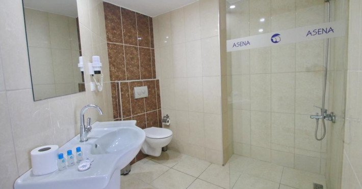 Oaspeții au la dispoziție serviciul de room service pentru a servi masa sau diverse băuturi. În camere există baie cu duș ce are în dotare foehn și articole de toaletă gratuite. Unele camere au balcon cu vedere la mare, unde oaspeții pot admira apusul sau răsăritul soarelui. Camerele confortabile de la Asena Hotel au pardoseală de gresie/ marmură, aer condiționat, Tv cu canale prin satelit și seif. Oaspeții au acces gratuit la serviciul Wi-fi în camere. Curățenia in cameră se face zilnic. Toate camerele spațioase de la Asena Hotel au zonă de relaxare. Proprietatea oferă camere pentru nefumători.