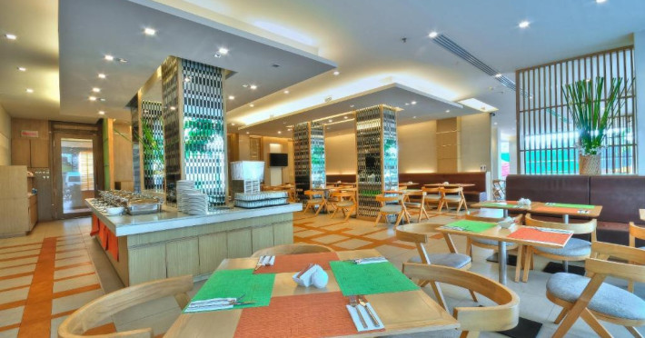 Restaurantul hotelului servește preparate din bucătăria internațională. Există, de asemenea, o cafenea care oferă inghețată, produse de patiserie și salate, precum și un lounge bar.