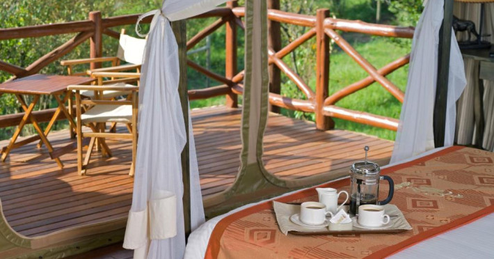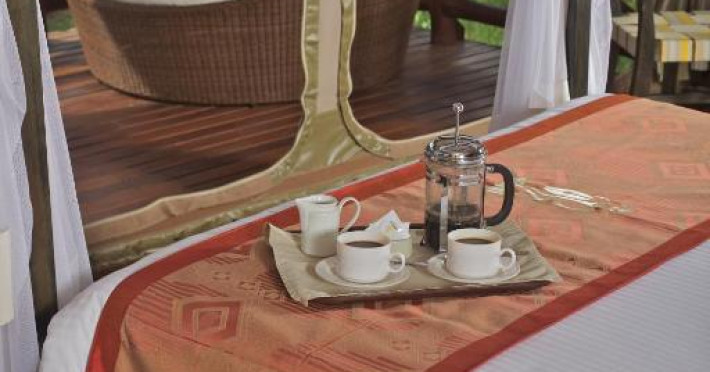 Fiecare cort de lux are o punte de lemn cu vedere la campii și la fauna sălbatică din rezervație. Patul este acoperit cu plase de țanțari, iar baia privată include duș cu articole de toaletă gratuite.