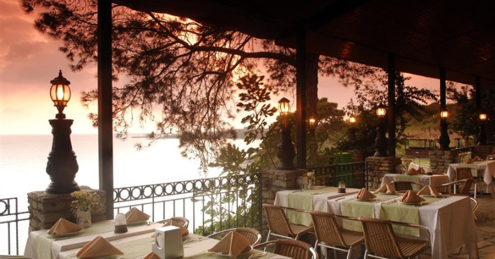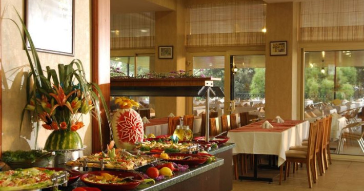 Cu o terasă acoperită ce oferă o panoramă asupra Golfului Antalya, restaurantul hotelului servește preparate din bucătăria mediteraneană.