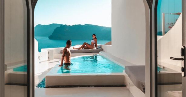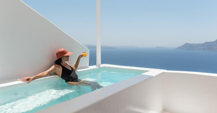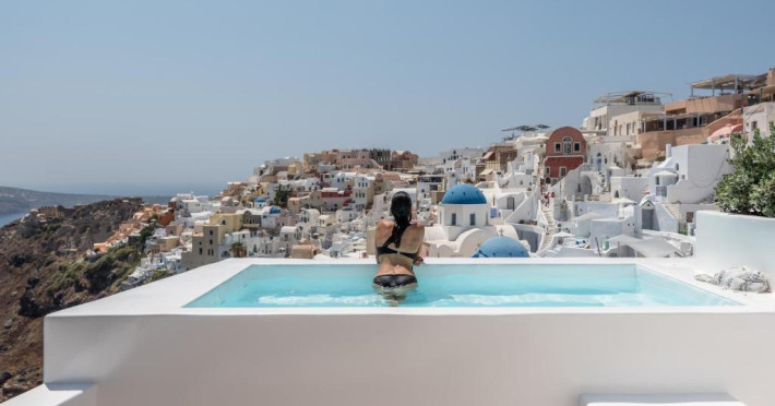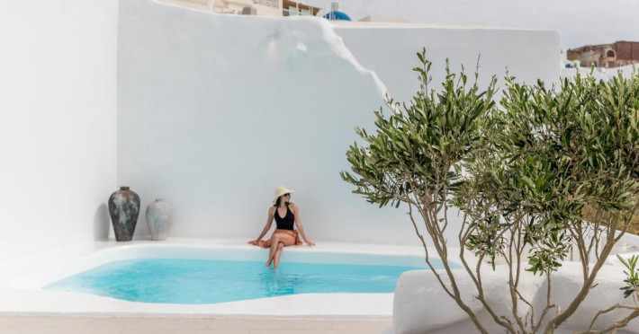 Oferind vederi magnifice la pitorescul Oia, cu cupole albastre, Marea Egee și vulcan, Hotelul Aspaki by Art Maisons, in stil cicladic, oferă suite elegante, cu Wi-Fi gratuit. Oferă o piscină in aer liber, un centru spa cu saună și un bar.