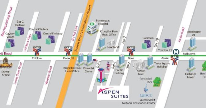 Aspen Suites Bangkok se află la 10 minute de mers pe jos de stația de tren aerian BTS Nana sau Phloenchit. Opțiuni de luat masa și un magazin alimentar se găsesc la Centrul Phloenchit din apropiere.