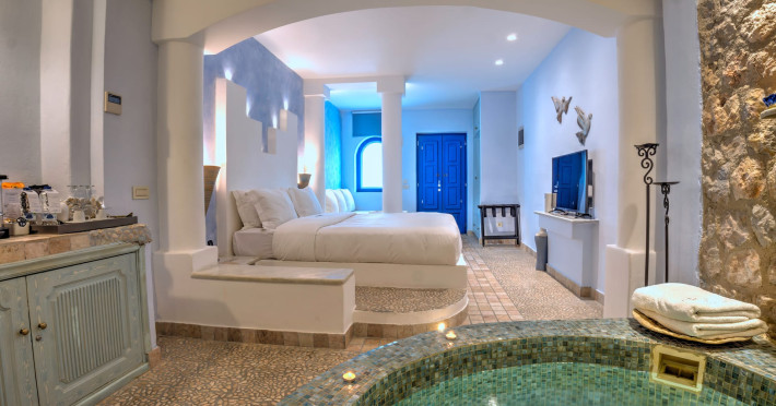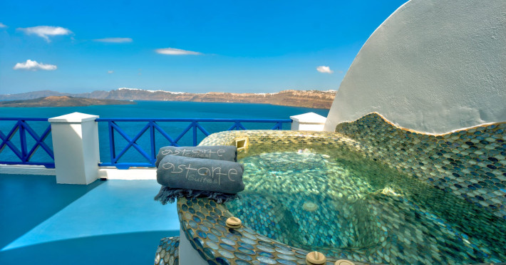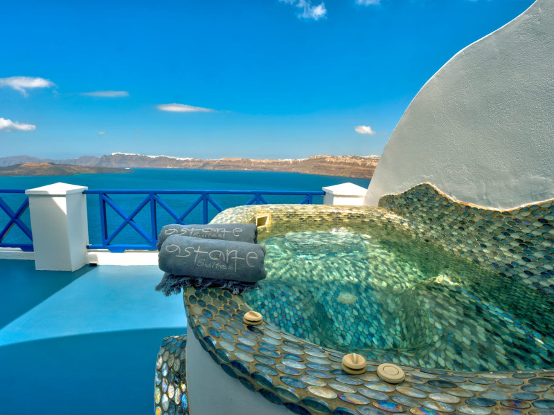 LocationAstarte Suites consists of 15 luxury suites built Cliffside at Akrotiri’s Caldera with direct breathtaking views of the Aegean Sea and the Volcano of Santorini. Located at a privileged location, away from the busy crowds, makes it ideal for secluded and luxury romantic vacation in Santorini.Hotel is 9 Km from the airport, 6 Km from the port and 10 Km from the Capital city of Fira.Hotel is located just a short drive away from the vibrant Red beach, Akrotiri excavations, and the Lighthouse for less crowded sunset views.ArchitectureStylish traditional Cycladic architecture is in perfect harmony with the environment as lava rocks and other earth materials are combined. The interior design is inspired from ancient Mediterranean cultures distinguishing each suite’s different personality and character. Hotel facilitiesRestaurant provides a greek tasting experience while its unique location on the rim of the Caldera of Santorini ensures of stunning views. Infinity pool with jacuzzi having sun loungers, umbrellas and relaxing bean bags. Lunch and refreshing drinks are served during the day. Beach towels provided.En suite massage services in the privacy of your suite from our specialised masseur. A series of revitalizing massage treatments are sure to balance your body and mind.Concierge: arrangement of transfers, flowers and room decoration for special occassions, car rental, boat excursions, private dining, wine tasting, chartering of helicopters and yachts. Please contact us: info@astartesuites.gr Guest Facilities & ServicesTransfer for guests’ arrival and departure with a/c SUVWelcome Champagne and fresh fruit plate upon arrivalComplimentary WiFi24h Front deskBell boy servicesRoom serviceBreakfast is served at guests’ private balcony or terracePrivate balcony or terrace to all roomsTwice daily maid serviceLaundry and pressing servicesManicure-pedicure-coiffure and make up stylist Beach bag with XL beach towelsWeddingsWhat would be more ideally than to be united with your beloved one overlooking the ocean from our extraordinary wedding pavilion? Children PolicyReservations with children above 13 years old can be acceptedLocationAstarte Suites consists of 15 luxury suites built Cliffside at Akrotiri’s Caldera with direct breathtaking views of the Aegean Sea and the Volcano of Santorini. Located at a privileged location, away from the busy crowds, makes it ideal for secluded and luxury romantic vacation in Santorini.Hotel is 9 Km from the airport, 6 Km from the port and 10 Km from the Capital city of Fira.Hotel is located just a short drive away from the vibrant Red beach, Akrotiri excavations, and the Lighthouse for less crowded sunset views.ArchitectureStylish traditional Cycladic architecture is in perfect harmony with the environment as lava rocks and other earth materials are combined. The interior design is inspired from ancient Mediterranean cultures distinguishing each suite’s different personality and character. Hotel facilitiesRestaurant provides a greek tasting experience while its unique location on the rim of the Caldera of Santorini ensures of stunning views. Infinity pool with jacuzzi having sun loungers, umbrellas and relaxing bean bags. Lunch and refreshing drinks are served during the day. Beach towels provided.En suite massage services in the privacy of your suite from our specialised masseur. A series of revitalizing massage treatments are sure to balance your body and mind.Concierge: arrangement of transfers, flowers and room decoration for special occassions, car rental, boat excursions, private dining, wine tasting, chartering of helicopters and yachts. Please contact us: info@astartesuites.gr Guest Facilities & ServicesTransfer for guests’ arrival and departure with a/c SUVWelcome Champagne and fresh fruit plate upon arrivalComplimentary WiFi24h Front deskBell boy servicesRoom serviceBreakfast is served at guests’ private balcony or terracePrivate balcony or terrace to all roomsTwice daily maid serviceLaundry and pressing servicesManicure-pedicure-coiffure and make up stylist Beach bag with XL beach towelsWeddingsWhat would be more ideally than to be united with your beloved one overlooking the ocean from our extraordinary wedding pavilion? Children PolicyReservations with children above 13 years old can be accepted