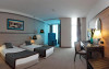 Fiecare cameră este echipată cu aer condiționat, televizor, telefon, minibar, baie prevăzută cu duș sau cadă, uscător de păr și balcon.