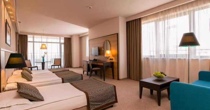 Hotelul Astera este situat la doar 150 de metri de plajă, oferind o vedere impresionantă către marea vastă și albastră. Fiind amplasat în inima stațiunii, acest hotel modern se bucură de înconjurarea frumuseții naturii, cu copaci verzi care adaugă o notă de prospețime și relaxare. Cu un design interior elegant și soluții arhitecturale moderne, hotelul impresionează prin culorile vibrante și prin designul inovator. Aceste elemente se combină armonios pentru a crea o atmosferă de confort și rafinament, oferind o experiență de neuitat și plăcută tuturor oaspeților săi.Facilități hotel