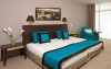 Camerele duble: 85 de camere cu o suprafata de 18 mp, paturile pot fi matrimoniale sau twin (2 paturi separate), balcon, TV, telefon, mini bar, podeaua cu mocheta sau parchet, dus, uscator de par.