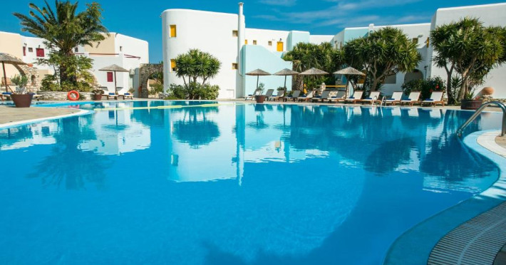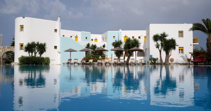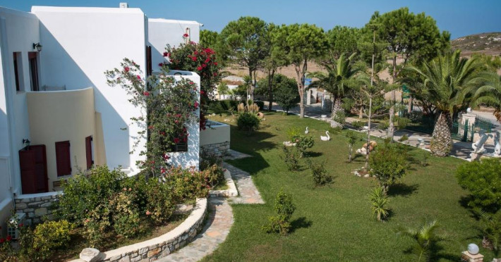 Complexul este construit și decorat in ton cu estetica și arhitectura cicladice. Numeroasele sale facilități sportive și de recreere includ un teren de tenis, minigolf și cadă cu hidromasaj. Oaspeții mai tineri se pot distra la piscina pentru copii. Asteras Paradise se află la 5 km de cosmopolita Naousa și la 16 km de Parikia.