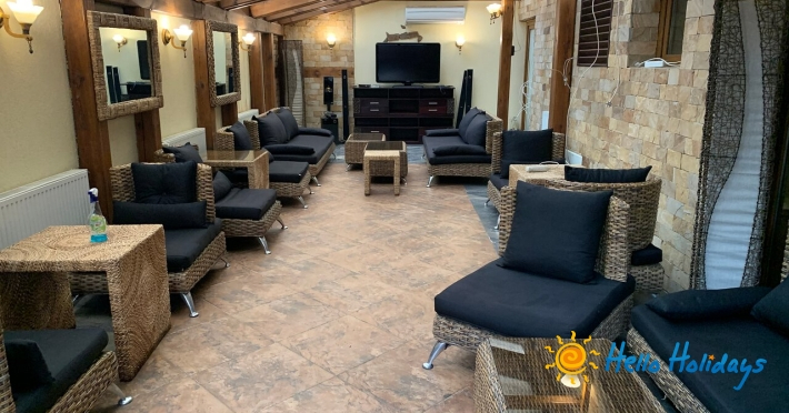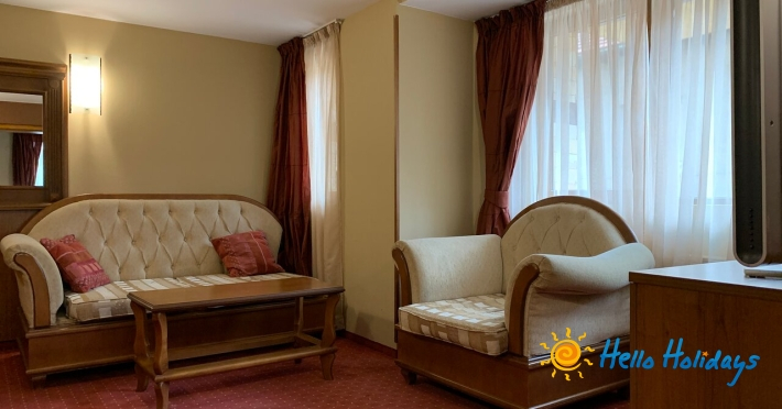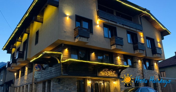Hotelul dispune de un restaurant cu o capacitate de 60 locuri, lobby bar, wi-fi, centru SPA contra-cost (sauna, baie cu aburi, jacuzzi, masaje de relaxare), loc de joaca pentru copii, parcare cu plata (aprox. 10 leva pe zi/masina), transfer catre centrul de ski (contra-cost). Animalele de companie nu sunt acceptate.