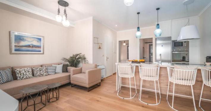 Each apartment features air conditioning, complimentary Wi-Fi, a fully equipped kitchen, a living area with a sofa bed and flat-screen TV, a private bathroom with a shower, and a balcony ideal for peaceful moments of relaxation. A washing machine, coffee maker, and electric kettle are also provided for added convenience.