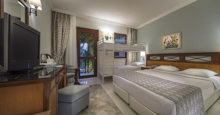 Sunt disponibile 496 camere. Camerele confortabile de la Asteria Bodrum Resort au pardoseală de gresie/ marmură, aer condiționat, Tv cu canale prin satelit și seif. Unele camere au balcon, cu vedere la piscină, unde oaspeții se pot relaxa în voie. Fiecare cameră dispune de minibar și cană-fierbător. Oaspeții pot solicita serviciul de room service pentru a servi masa sau diverse băuturi. În camere există baie cu cadă sau duș ce are în dotare foehn și articole de toaletă gratuite. Curățenia in cameră se face zilnic. Proprietatea oferă camere pentru familie cu o suprafață mai mare și un număr mai mare de paturi față de cele standard. Se pot rezerva de asemenea camere pentru nefumători.