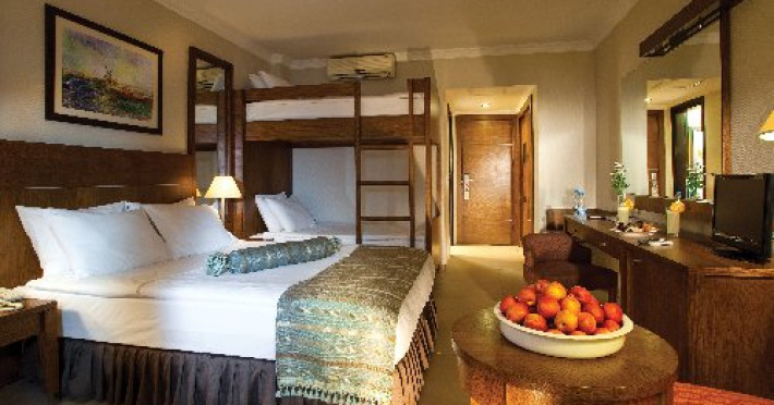 FACILITATI: Restaurant principal, restaurant A la Carte: turcesc, pescaresc, italienesc, baruri in complexul hotelier, disco club. Serviciile medicale, spalatoria, baby sitting, frizerul si coaforul, telefonul, faxul, internetul si jocurile de calculator, centru cumparaturi, serviciul rent a car sunt servicii contra cost.