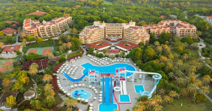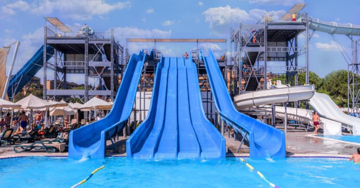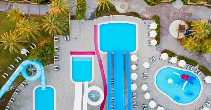 Complexul impresionează prin piscinele sale extinse, inclusiv piscine dedicate copiilor și tobogane acvatice care garantează distracția celor mici. Programul de animație, mini clubul și terenurile de sport completează perfect oferta de activități pentru intreaga familie.