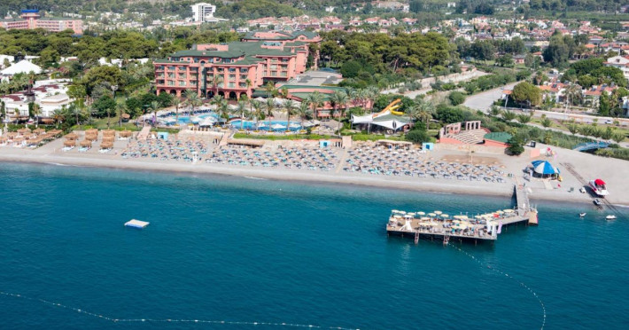 Acest complex este ideal pentru familii oferind servicii de relaxare pentru parinti si un divertisment interesant pentru copii. Hotelul se afla pe coasta de sud, in regiunea Kemer Çamyuva, o regiune idilica intre mare si Muntii Taurus. Localitatea Kemer este la aproximativ 10 km, iar aeroportul Antalya este la aproximativ 65 km. Plaja este privata, cu nisip si pietricele, cu debarcader iar sezlongurile sunt gratuite. Oaspetii au la dispozitie 4 restaurante . Bucatarie internationala in restaurantul principal, bucatarie italiana și turceasca în restaurantele a la carte. IMPORTANT: Descrierea hotelului se bazeaza pe detaliile disponibile la momentul pregatirii tarifelor pentru sezonul turistic ce urmeaza a se desfasura si are caracter pur informativ. Hotelul poate aduce modificari de structura, denumiri camere, tip serivicii incluse/neincluse si altele, fara a notifica in prealabil. Pentru informatiile oficiale va rugam sa consultati website-ul hotelului.IMPORTANT