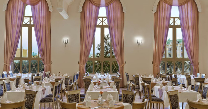 La Asteria Kremlin Palace oaspeții au la dispoziție un restaurant care servește mâncare în stil bufet și à la carte. Preparate din bucătăria locală, internațională, italiană, precum și preparate pescărești așteaptă să fie degustate în fiecare zi la micul dejun, prânz și cină. Masa poate fi servită atât în interior, cît si în aer liber, pe terasă, în funcție de vreme. Oaspeţii pot avea diverse băuturi răcoritoare sau alcoolice la bar. În cadrul proprietății există și un snack bar care servește băuturi și gustări. Pentru cei cu anumite nevoi de nutriție, Asteria Kremlin Palace oferă meniuri pentru diete speciale.