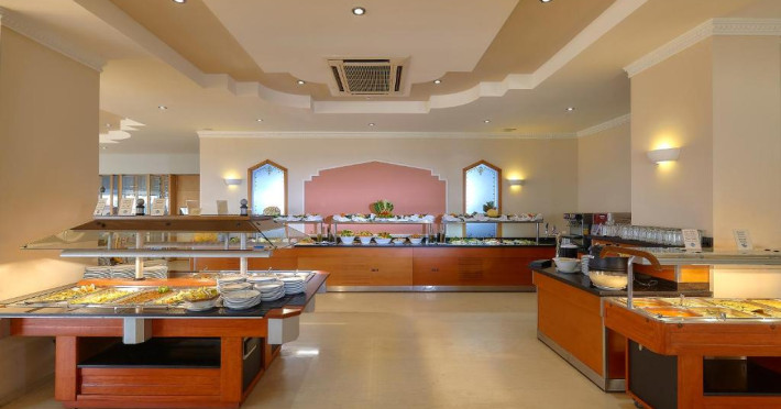 Astir Beach pune la dispoziția oaspeților un restaurant care servește mâncare în stil bufet. Masa poate fi servită atât în interior, cît si în aer liber, pe terasă, în funcție de vreme. 2 baruri, dintre care unul la piscină, sunt disponibile cu o ofertă variată de băuturi răcoritoare și alcoolice. În cadrul proprietății există și un snack bar care servește băuturi și gustări.