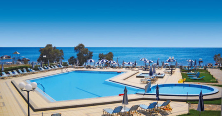 Hotelul Astir Beach este o varianta optima de cazare pentru cei care doresc un concediu cu buget mediu, cat și pentru familiile cu copii, datorita apropierii fata de plaja din stațiune.Descriere