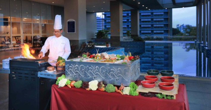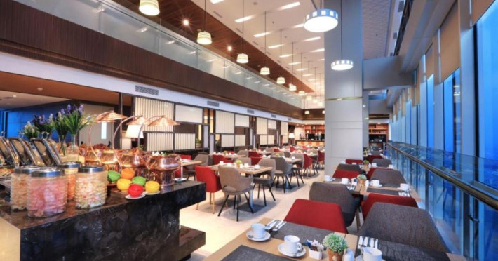 Restaurant și agrement: Hotelul oferă un restaurant care servește bucătărie asiatică și un bar. Oaspeții se pot relaxa la centrul spa și de wellness, la piscina in aer liber deschisă tot timpul anului și la sala de fitness.