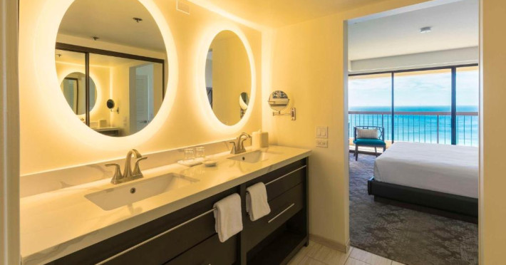 Toate suitele au vedere la Oceanul Pacific. Fiecare include o bucătărie complet utilată, cu un cuptor cu microunde, un frigider, un aparat de cafea, un prăjitor de paine și o mașină de spălat vase, precum și o mașină de spălat și un uscător de rufe, un balcon, un TV cu canale prin cablu, un DVD player, călcat. facilitati si aer conditionat. Baia privată include duș și uscător de păr. Este disponibil serviciu zilnic de menaj și turndown service.