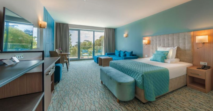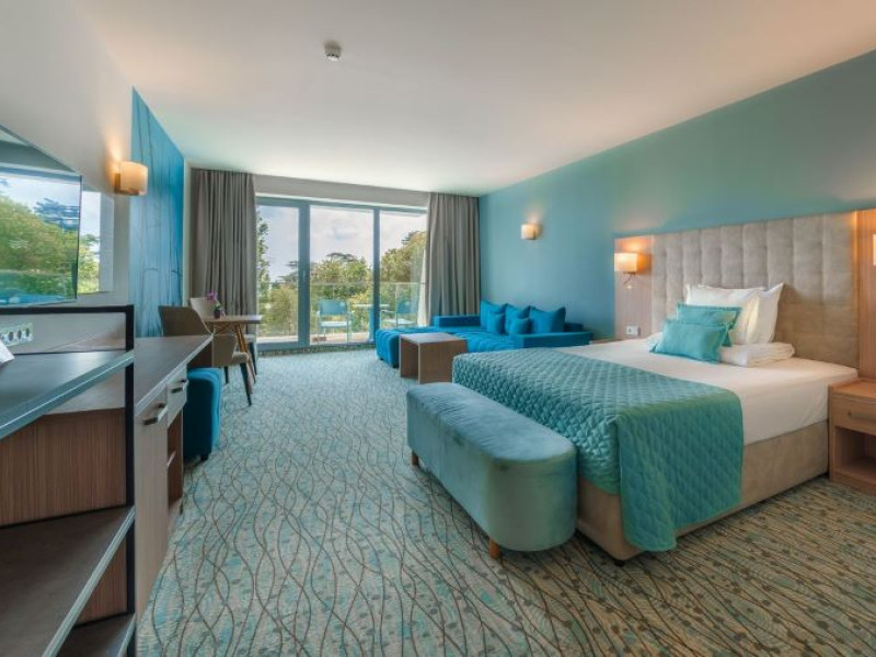 Hotelul Astoria se află chiar în fața plajei, având doar promenada maritimă ca barieră între el și nisipul fin. Situat la doar 200 de metri de centrul orașului, hotelul se bucură de o locație ideală, ușor accesibilă și perfectă pentru cei care doresc să exploreze viața din inima orașului. Cu o arhitectură modernă și remarcabilă, hotelul impresionează și atrage privirile tuturor celor care îl vizitează.Facilități camere