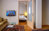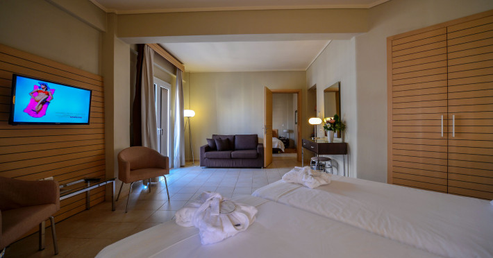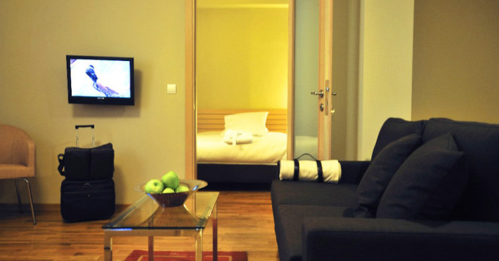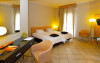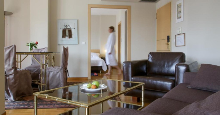 Un aparat de aer condiționat și o pardoseală încălzită ce poate fi ajustată individual creează o atmosferă plăcută în camere. În majoritatea camerelor se găsește câte un balcon. Camerele au un pat dublu. De asemenea, sunt disponibile un seif, un minibar și un birou. Se garantează diverse posibilități de comunicare și divertisment prin echiparea cu un telefon cu apelare directă, un televizor cu canale prin satelit/cablu TV și WiFi (gratuit). În plus, clienții pot să apeleze la serviciul de pregătire a camerei pentru somn. Băile dispun de un duș, de o cadă și de o cadă cu hidromasaj. O altă facilitate oferită este un uscător de păr. Se oferă spre rezervare camere adaptate pentru scaun cu rotile.