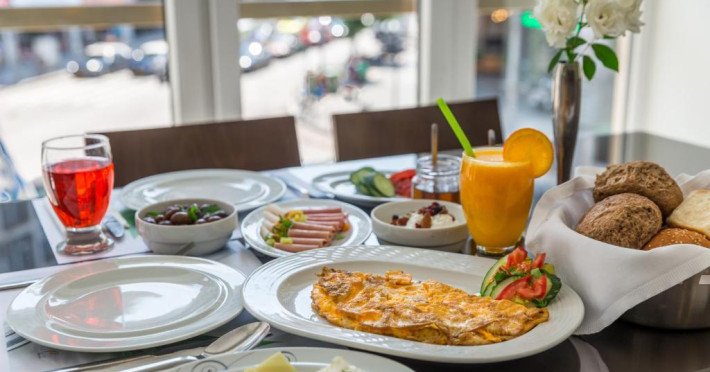 Locurile unde se poate lua masa cuprind o sală de mese, o sală pentru micul dejun, o cafenea și un bar. Clienții sunt răsfățați din punct de vedere culinar în restaurantul pentru nefumători cu aer condiționat și scaune înalte pentru copii. Locul de cazare oferă pentru masă pachete de servicii cu mic dejun inclus, demipensiune și pensiune completă. Un mic dejun continental de la bufet garantează o zi bună de dimineață, la prânz și cină se poate alege din mâncăruri à la carte. La prânz pot fi comandate mâncăruri din meniu. Sunt disponibile și mâncăruri speciale, printre care feluri de mâncare dietetice. De asemenea, unitatea de cazare pune la dispoziție oferte speciale de masă.