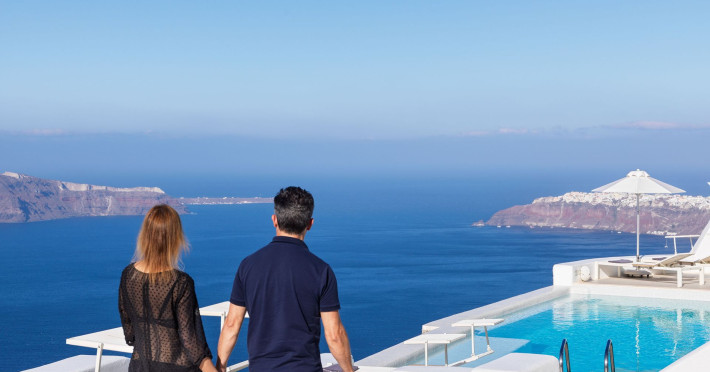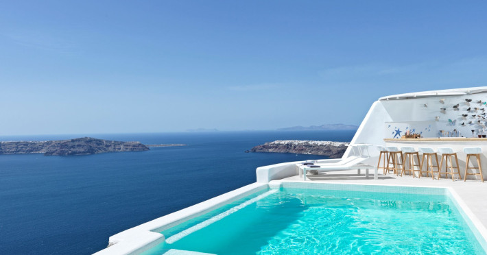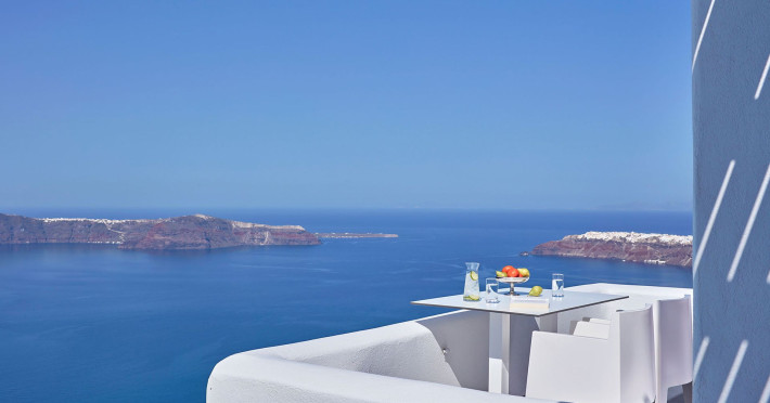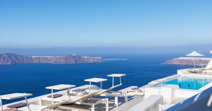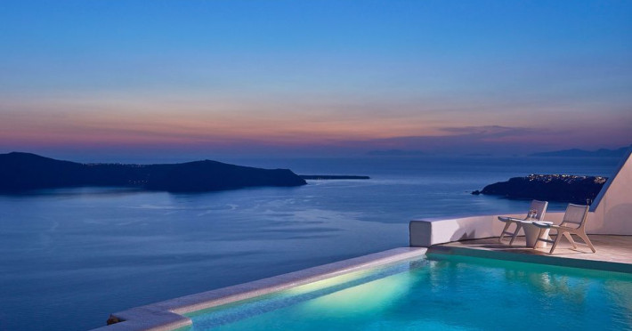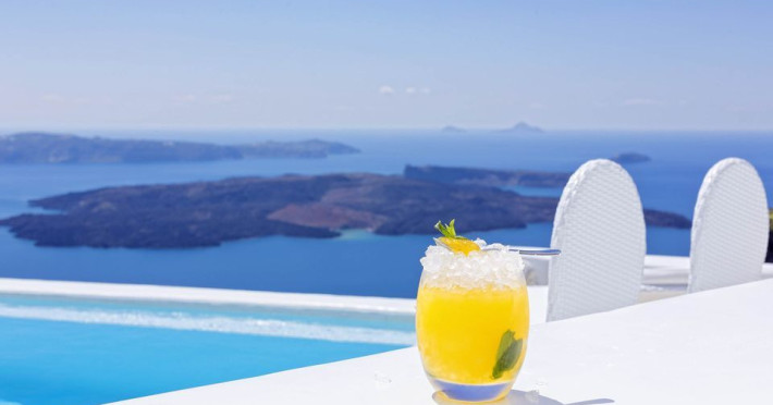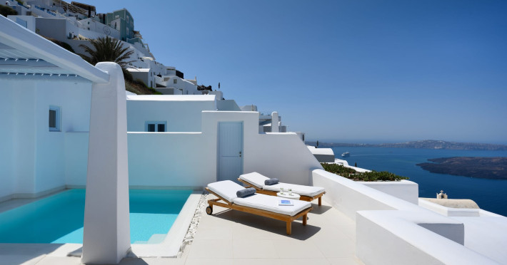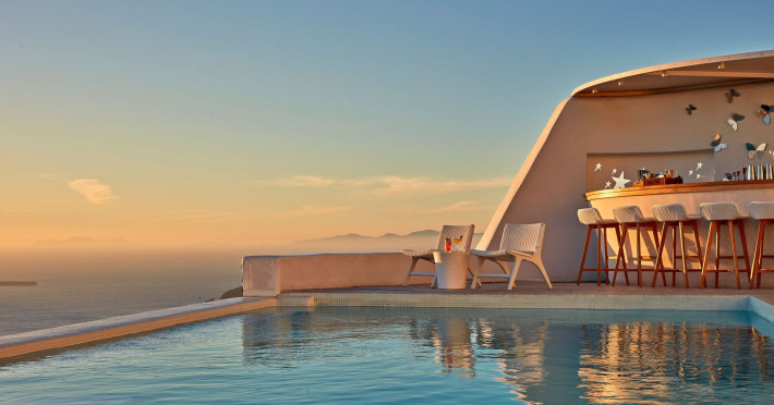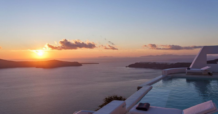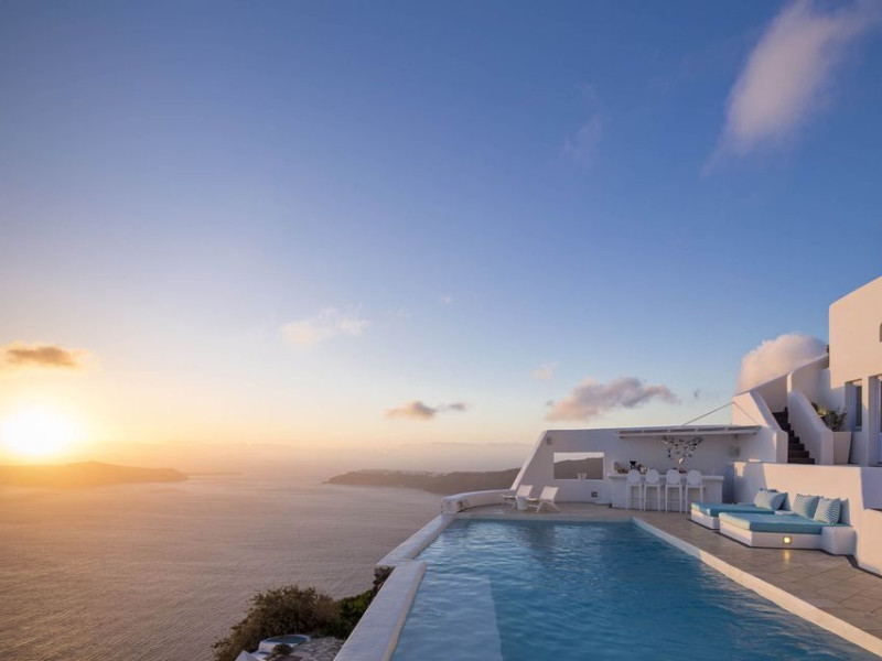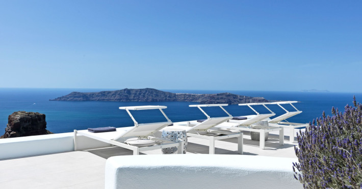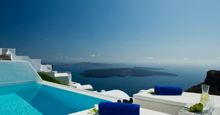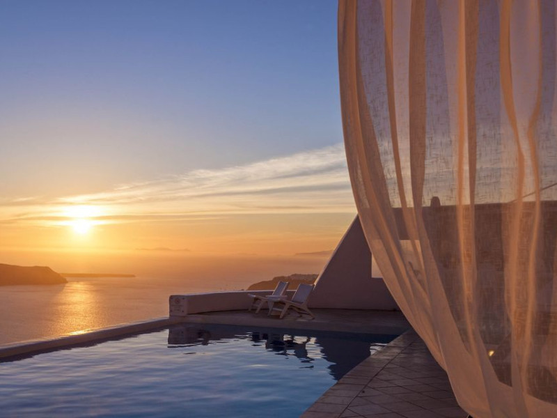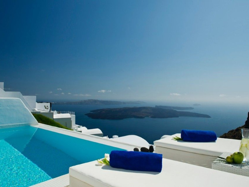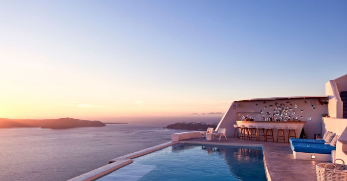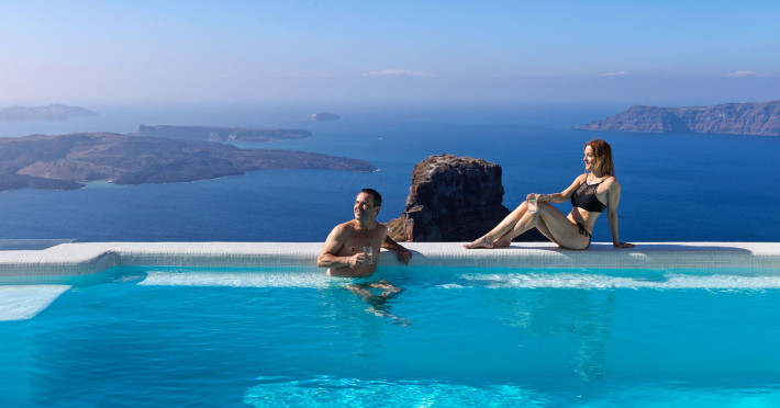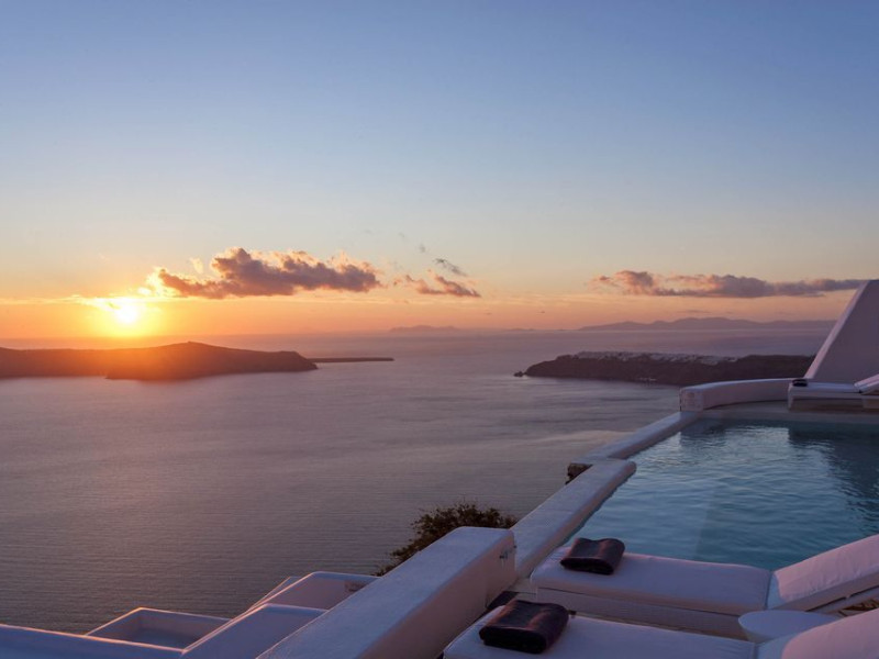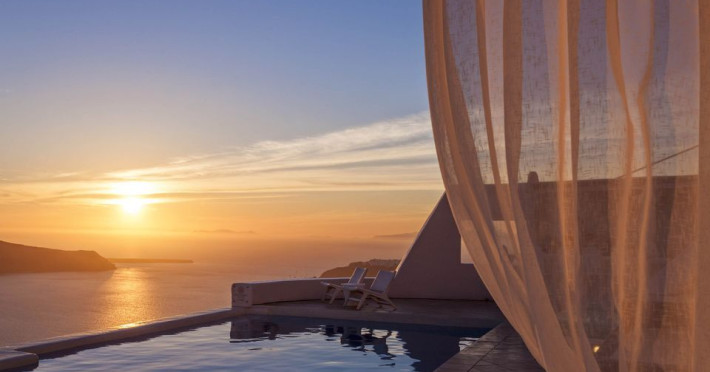 The ASTRA complex consists of 21 Suites located only 2 km from the main town of Fira, in the peaceful village of Imerovigli, at the highest point on the cliffside of Santorini.Each Suite has it’s own balcony overlooking the volcano and the Aegean Sea. The main terrace, as well as the heated swimming pool (the pool is heated only during the middle and low season) and poolside bar, offers a magnificent panoramic view of the world-famous Santorini sunset. From here or your own balcony, you can enjoy the entire volcanic setting in a most tranquil location, and yet convenient to all the main attractions of Santorini.Please note additional information in order to avoid any misunderstanding: While each accommodation does have it's own private balcony or terrace, this means the space is yours alone and is not shared with other guests, it does not mean you cannot be seen by anyone, as the buiding of walls and partitions would block the beautiful caldera scenery you come here to enjoy.That said, the Suites with open air Jetted Tub , Astra pool suite and Infinity pool suites are the most private accomodations possible, so we encourage you to book only these categories if you wish maximum privacy in this type of setting.The ASTRA complex consists of 21 Suites located only 2 km from the main town of Fira, in the peaceful village of Imerovigli, at the highest point on the cliffside of Santorini.Each Suite has it’s own balcony overlooking the volcano and the Aegean Sea. The main terrace, as well as the heated swimming pool (the pool is heated only during the middle and low season) and poolside bar, offers a magnificent panoramic view of the world-famous Santorini sunset. From here or your own balcony, you can enjoy the entire volcanic setting in a most tranquil location, and yet convenient to all the main attractions of Santorini.Please note additional information in order to avoid any misunderstanding: While each accommodation does have it's own private balcony or terrace, this means the space is yours alone and is not shared with other guests, it does not mean you cannot be seen by anyone, as the buiding of walls and partitions would block the beautiful caldera scenery you come here to enjoy.That said, the Suites with open air Jetted Tub , Astra pool suite and Infinity pool suites are the most private accomodations possible, so we encourage you to book only these categories if you wish maximum privacy in this type of setting.