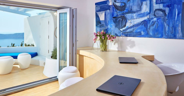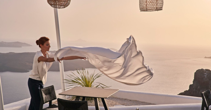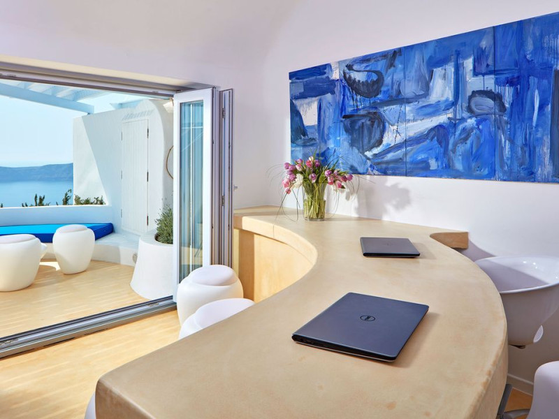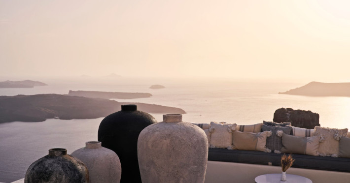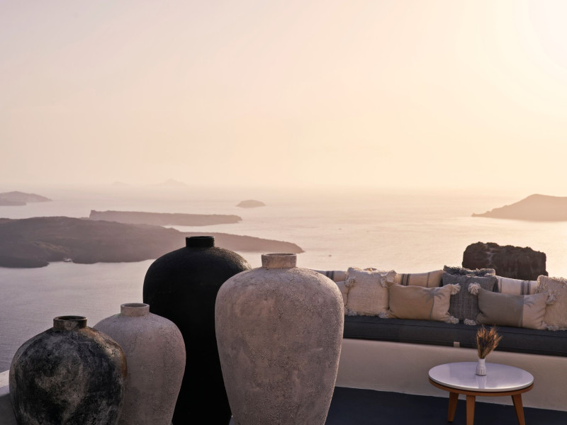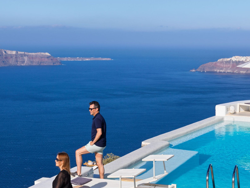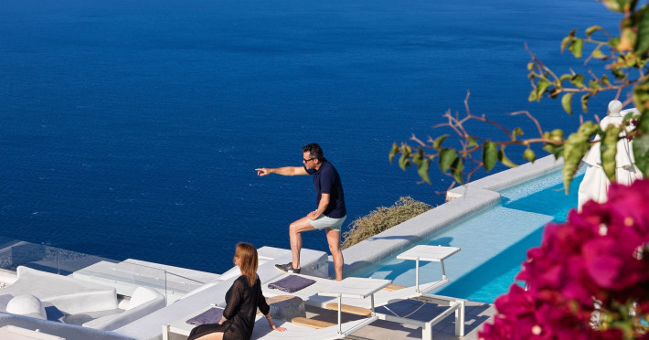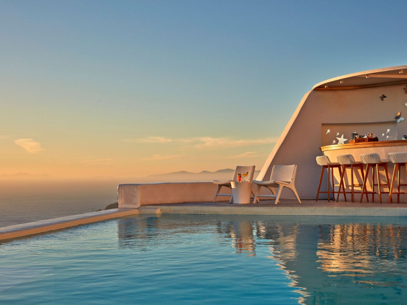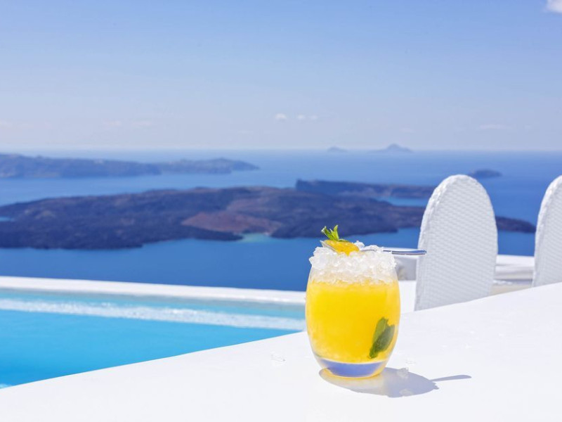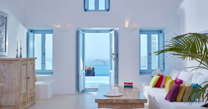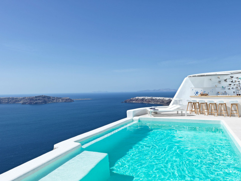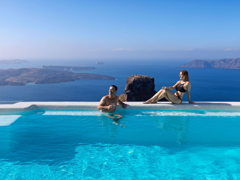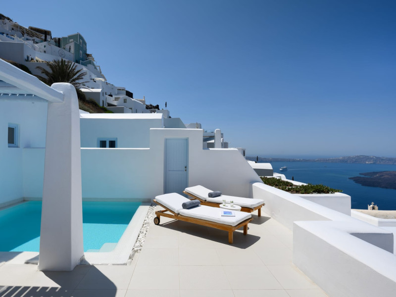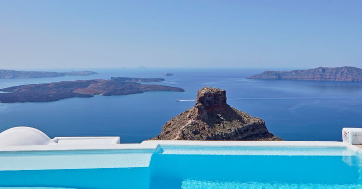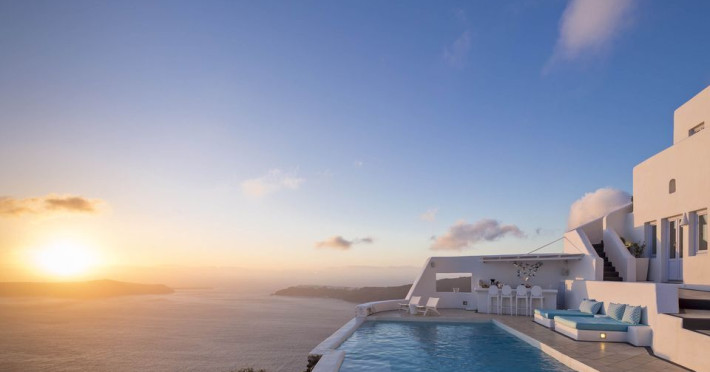 The ASTRA complex consists of 21 Suites located only 2 km from the main town of Fira, in the peaceful village of Imerovigli, at the highest point on the cliffside of Santorini.Each Suite has it’s own balcony overlooking the volcano and the Aegean Sea. The main terrace, as well as the heated swimming pool (the pool is heated only during the middle and low season) and poolside bar, offers a magnificent panoramic view of the world-famous Santorini sunset. From here or your own balcony, you can enjoy the entire volcanic setting in a most tranquil location, and yet convenient to all the main attractions of Santorini.Please note additional information in order to avoid any misunderstanding: While each accommodation does have it's own private balcony or terrace, this means the space is yours alone and is not shared with other guests, it does not mean you cannot be seen by anyone, as the buiding of walls and partitions would block the beautiful caldera scenery you come here to enjoy.That said, the Suites with open air Jetted Tub , Astra pool suite and Infinity pool suites are the most private accomodations possible, so we encourage you to book only these categories if you wish maximum privacy in this type of setting.The ASTRA complex consists of 21 Suites located only 2 km from the main town of Fira, in the peaceful village of Imerovigli, at the highest point on the cliffside of Santorini.Each Suite has it’s own balcony overlooking the volcano and the Aegean Sea. The main terrace, as well as the heated swimming pool (the pool is heated only during the middle and low season) and poolside bar, offers a magnificent panoramic view of the world-famous Santorini sunset. From here or your own balcony, you can enjoy the entire volcanic setting in a most tranquil location, and yet convenient to all the main attractions of Santorini.Please note additional information in order to avoid any misunderstanding: While each accommodation does have it's own private balcony or terrace, this means the space is yours alone and is not shared with other guests, it does not mean you cannot be seen by anyone, as the buiding of walls and partitions would block the beautiful caldera scenery you come here to enjoy.That said, the Suites with open air Jetted Tub , Astra pool suite and Infinity pool suites are the most private accomodations possible, so we encourage you to book only these categories if you wish maximum privacy in this type of setting.