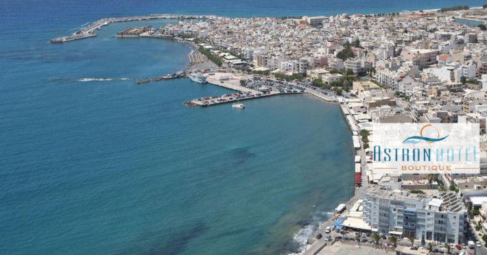 Hotelul Astron se află pe malul mării, cu vedere la golful incantător din Ierapetra. Oferă camere cu TV LCD de 26 inch, Wi-Fi și vedere panoramică la mare sau la munte.