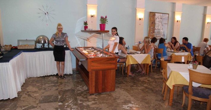 La proprietate există un snack-bar care oferă cafea, băuturi și gustări. Masa poate fi servită atât în interior, cît si în aer liber, pe terasă, în funcție de vreme. Pentru cei cu anumite nevoi de nutriție, Astron Hotel oferă meniuri pentru diete speciale.