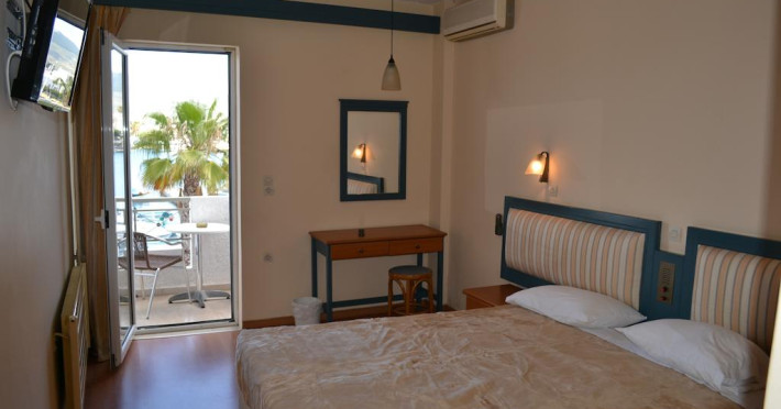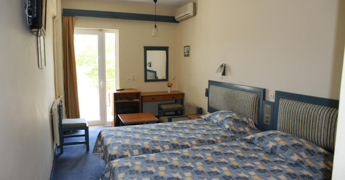 Camerele confortabile de la Astron Hotel au pardoseală de gresie/ marmură, aer condiționat, Tv cu canale prin satelit și seif. Fiecare cameră dispune de cană-fierbător. Unele camere au balcon cu vedere la mare. În camere există baie cu cadă sau duș ce are în dotare foehn și articole de toaletă gratuite. Oaspeții au acces gratuit la serviciul Wi-fi în camere. Curățenia in cameră se face zilnic.