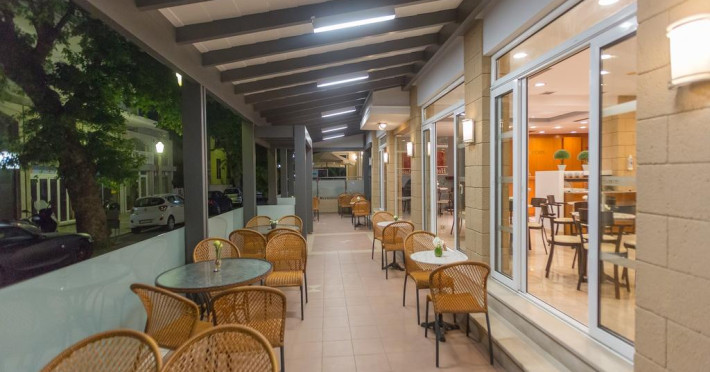 Astron Hotel servește zilnic un mic dejun tip bufet în zona de luat masa. La proprietate există un bar care oferă cafea și diverse băuturi. Acestea pot fi servite atât în interior, cît si în aer liber, pe terasă, în funcție de vreme.