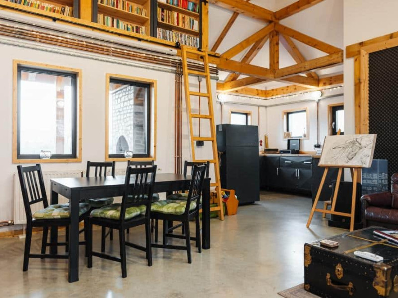 Casuta cu Atelier, cu o suprafata de 70 mp, formata dintr-un spatiu creativ si relaxant dotat cu biblioteca, videoproiector, PlayStation, jocuri si un banc de lucru pentru proiecte creative. Include o chicineta complet echipata si o baie cu dus, uscator de par, TV, internet, frigider, AC, articole de toaleta, terasa, aparat de cafea, cuptor de microunde. Detin un pat dublu in atelier, o canapea extensibila in a doua camera si un pat dublu in mansarda tip cuib.