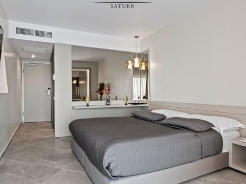 Suitele din cadrul Hotel Atena Saturn sunt compuse din 2 camere living si dormitor, un hol, doua grupuri sanitare dotate cu cabin de dus, articole de toalet, usctor de pr, prosoape si papuci. Dormitorul este dotat cu un pat dublu de 160/200 , LCD TV de 40' in timp ce in livingul generos veti gasi o canapea extensibila, minibar modern, espressor de cafea.