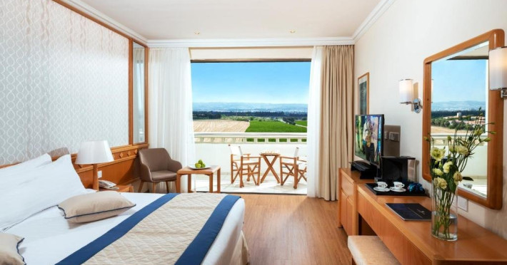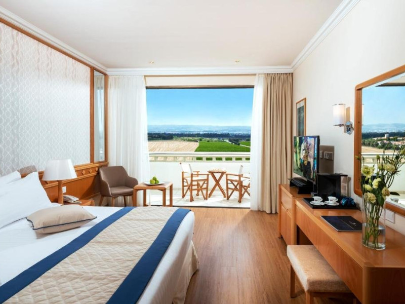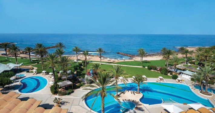 Locatie : Hotelul este situat direct pe plaja din Kato Paphos, la o plimbare placuta de portul pitoresc, siturile arheologice, magazine si viata de noapte. O statie de autobuz se gaseste chiar langa hotel, iar taxiurile sunt intotdeauna disponibile. Parcarea in parcarea hotelului este gratuita pentru oaspeti. Statiunea este situata convenabil la distante usoare de condus de cele doua aeroporturi internationale ale insulei, la doar 15 km de Paphos si la 140 km de Larnaca. Ca un bonus suplimentar pentru iubitorii de golf, exista patru terenuri de super golf usor accesibile cu masina.