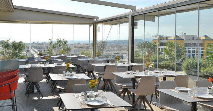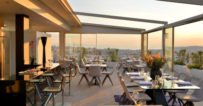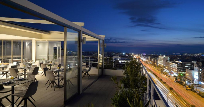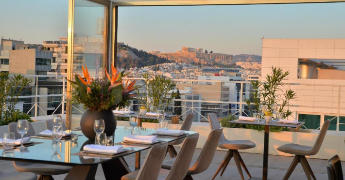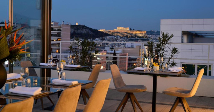 Athenaeum Smart Hotel găzduiește un restaurant care servește mancăruri din bucătăria americană, grecească și mediteraneană. La cerere, oaspeții pot beneficia și de preparat vegetariene și fără gluten.