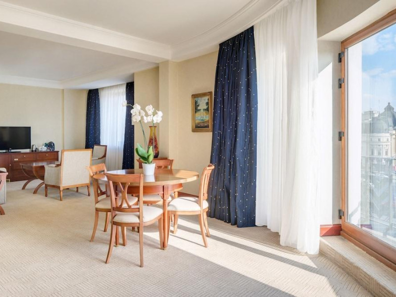 This hotel is located in the heart of the city and it isvery close to Henri Coanda Airport. From the hotel, guests can enjoy fantastic views of the Revolucin Square. The rooms are very spacious and are decorated in light colors, which makes them very cozy. Among its services we can find air conditioning, television, telephone, private bathroom with hairdryer and amenities, minibar and tea and coffee making facilities. The hotel also has a large indoor swimming pool as well as a gym for guests sports enthusiasts. If you are traveling with children, there is a wide variety of services and facilities for the little ones.Datorita dinamicitatii domeniului disponibilitatea ofertelor se modifica de la un moment la altul. De aceea ofertele sunt valabile in limita locurilor disponibile. Agentia nu este responsabila pentru eventualele neconcordante care pot aparea intre informatiile privind tarifele si alte detalii din site si informatiile primite in agentie. In aceste cazuri vor avea prioritate, intotdeauna, informatiile primite in agentie.