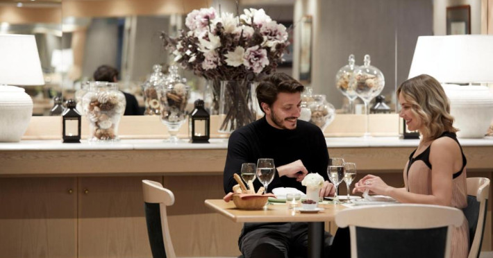 Restaurantul elegant Ellinikon servește mancăruri mediteraneene pregătite cu ingrediente proaspete, de calitate. Elegantul lounge bar Jason poate găzdui intalniri de afaceri sau de agrement. Oaspeții pot să savureze gustări, cocktail-uri și deserturi la patiseria hotelului.