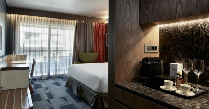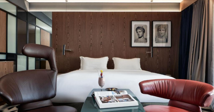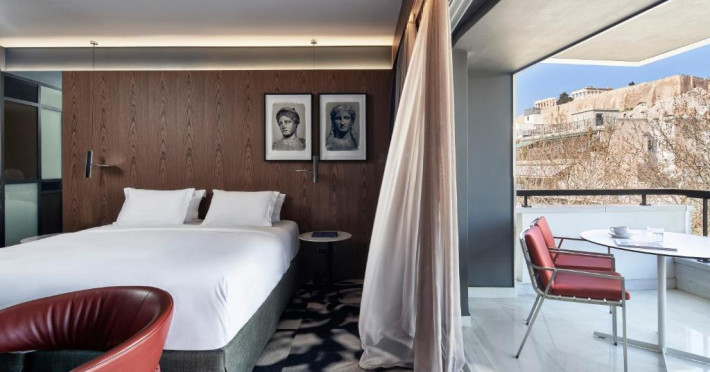 Toate camerele au verandă mobilată, birou, minibar, TV cu ecran plat, cutie de valori, uscător de păr, halate de baie și șlapi. In fiecare cameră și suită există aparat de cafea Nespresso. Situat la etajul 7 al hotelului, restaurantul Sense are vedere spectaculoasă la Acropole și orașul Atena și servește preparate din bucătăria grecească modernă. Hotelul oferă serviciu de spălătorie, centru de afaceri, sală de fitness, serviciu de inchirieri auto și tururi cu ghid ale orașului. Pot fi organizate transferuri de la/la Aeroportul Atena și portul Pireu. Stația de metrou Acropolis este situată la 160 de metri.