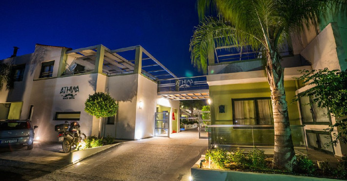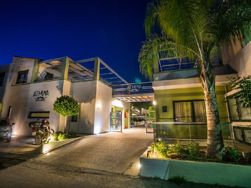 Hotelul Athina Beach este situat in Agii Apostoli, la aproximativ 3 kilometri de orasul Chania si la aproximativ 300 de metri de plaja. Zona este apreciata pentru plajele sale si pentru atmosfera linistita, dar ofera in acelasi timp acces rapid catre restaurante, magazine si atractiile turistice din Chania.