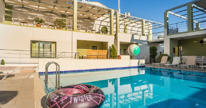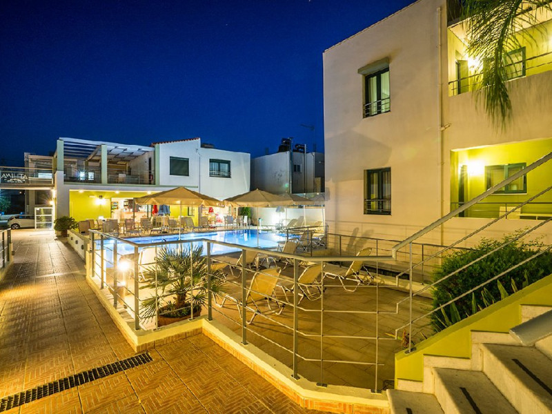 Descriere:Athina Beach Hotel este un hotel modern situat in statiunea Agii Apostoli din Creta, oferind un cadru placut pentru o vacanta relaxanta aproape de mare. Construit intr-un stil contemporan, hotelul se remarca prin designul arhitectural pe mai multe niveluri, conceput pentru a valorifica lumina naturala abundenta specifica insulei Creta. Atmosfera relaxanta, zonele exterioare decorate cu flori si facilitatile confortabile contribuie la un sejur placut atat pentru cupluri, cat si pentru familii.